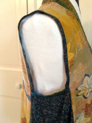 Directions for making a Tabula Rasa Vest are spelled out in our free download, Making a Tabula Rasa Vest. However, it is a simple alteration for anyone who know how to use binding in a garment or on a quilt. Simply leave out the jacket sleeves and finish the raw edges of the armhole. Here are a few pointers for making any Tabula Rasa Vest: