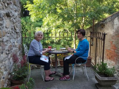 July 15-22 we will host our annual Enchanting France – Embellishing Fabric at La Cascade in Durfort France. This year’s participants had a memorable experience creating fabric treasures with paint and collage in the cozy art studio each morning. Afternoons were spent exploring the cultural treasures near our copper making village. The Southwest of France has a rich heritage as the center of blue pastel dying in the middle ages. We will be accompanied on all our adventures in the countryside by our bi-lingual guide Anna. One of this year’s participants called it “the trip of a lifetime”.