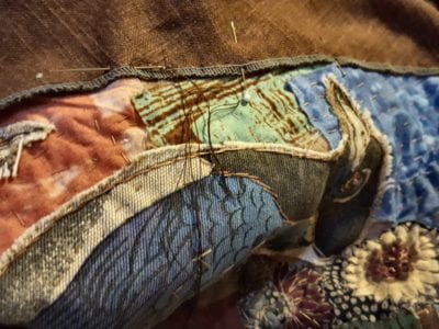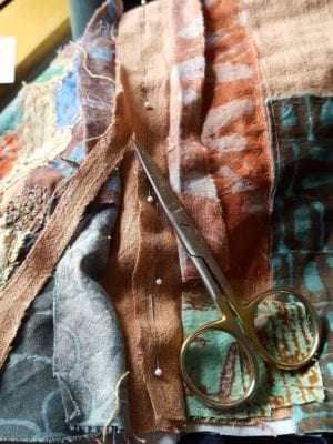 A Boro technique Tabula Rasa Jacket takes many hours of hand stitching and, before that, some careful thought regarding design and composition. Fortunately, I did not have to pick a pattern because my trusty Tabula Rasa Jacket (TRJ) pattern was perfect for this patching technique which I mixed with raw edge collage.