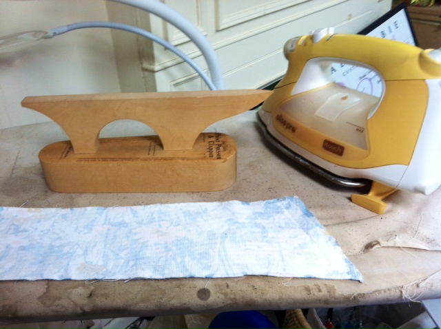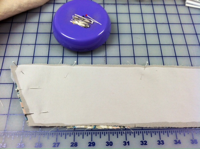Once it is pressed, reverse fold along the second fold line and pin the reverse fold in place at the neckline so you can form the finished neck opening.
