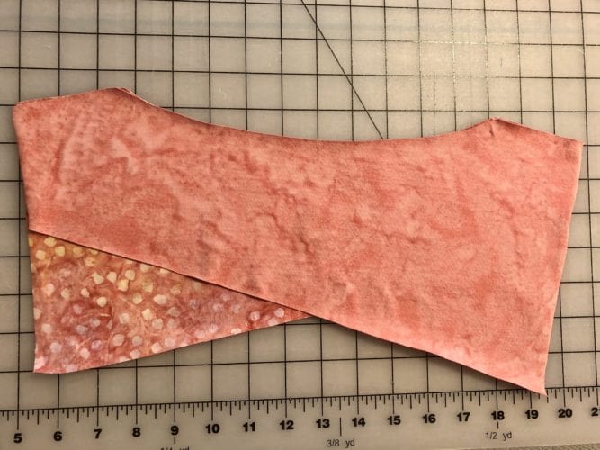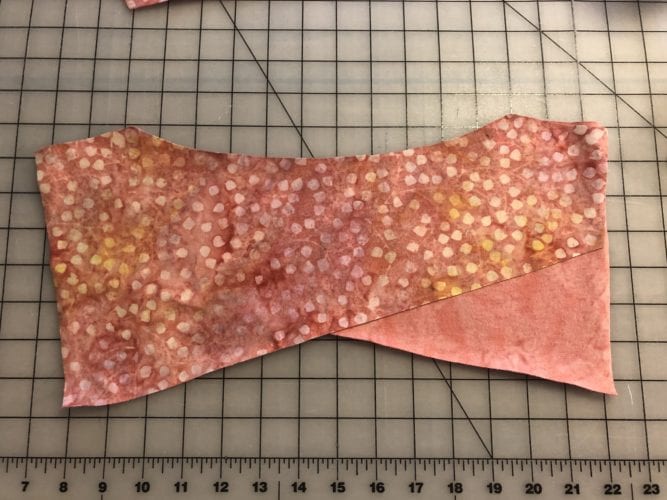 I cut the lower collar layer and side panels out of Coral Pink Spray and the upper collar layer out of Coral Pink Gardenista Vine. When you are alternating the direction of the collars, be careful to turn the patterns over to cut the second set of front and back collars! Here you can see me considering which layer to put on top.