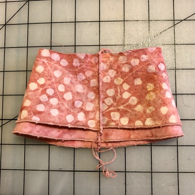 To prepare the collars, sew the front and back of each pair together at the shoulder, then finish the outer edge with your chosen technique. I finished the raw edges of the collar with a serger rolled edge. If you don’t have a serger, test out some of the overlock stitches on your regular machine, or turn the outer edges under ¼” and top stitch them down. Stack one set of collars over the other and baste them together along the neckline.