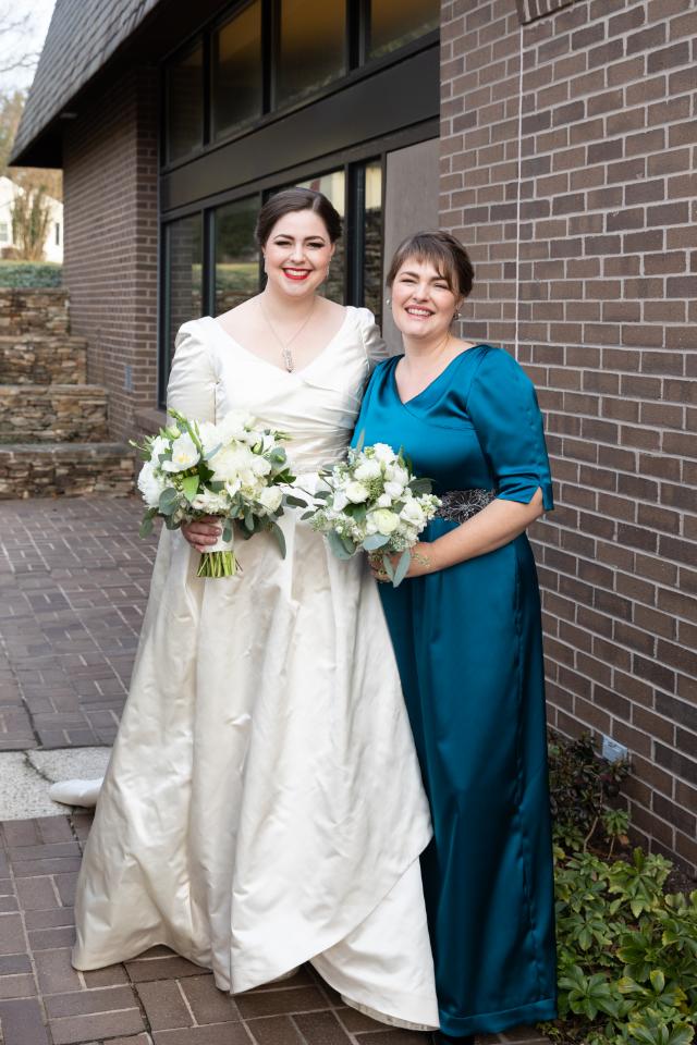 When we relocated for my husband to go to law school, I got a job in a bridal shop altering bridesmaids dresses and wedding gowns. It was fun to learn about a new kind of sewing and the fabrics were so luscious to work with. Those lessons served me well when making the dresses for my daughter’s wedding in December.