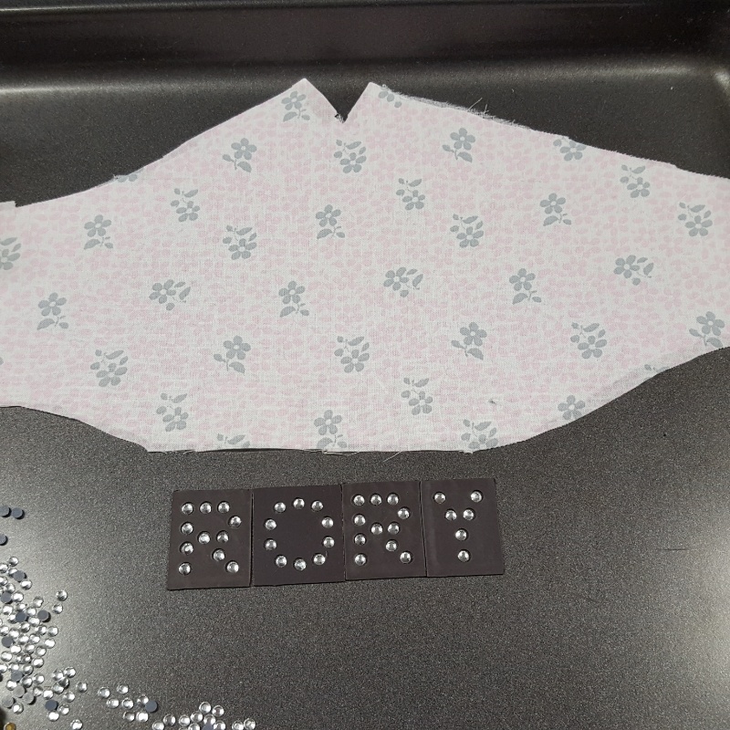 Add some bling with Rhinestone Genie templates and their ingenious method of attaching these sparklie little lovelies to your favorite fabric.  Here is a pair of birthday masks I made for my niece and her 2 year old daughter.  They match last week’s mother daughter beach coats in fine cotton batiste.