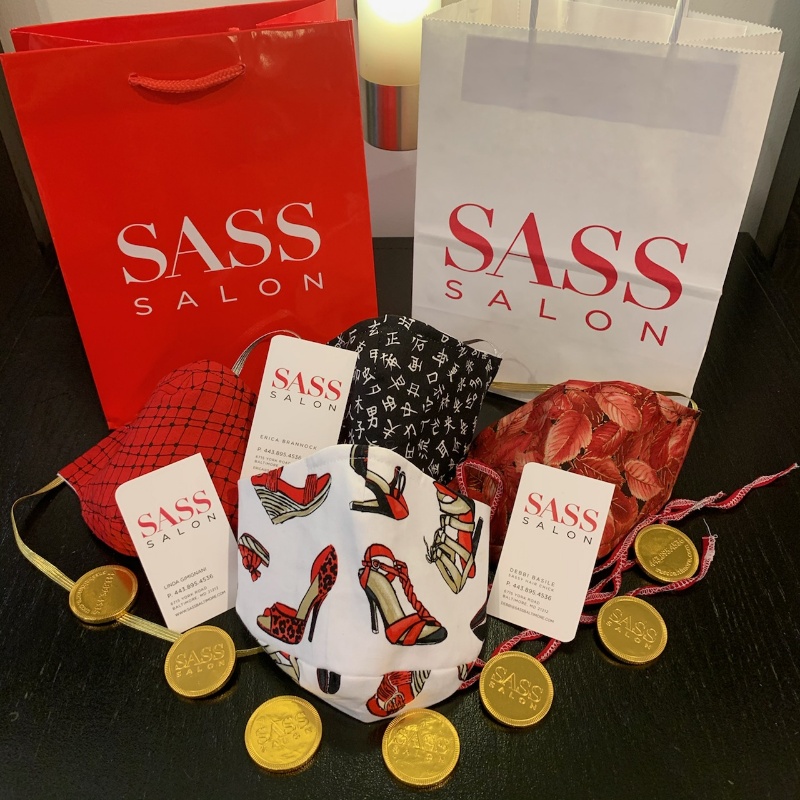 When I got my first haircut, hurrah, I made a new mask with ear loops.  My behind the head ties or elastic, which are so secure, would have been in the way.  I also took each of the 4 salon employees a mask that coordinated with the salon’s Red, White and Black color theme.