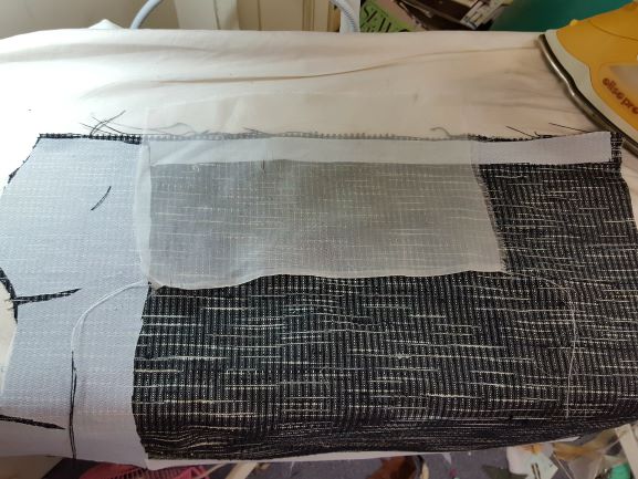 Once I cut the fabrics, I cut 1” strips of soft fusible interfacing to fuse into the seam allowances of the vest. Because the fabric was both white and black, after testing both colors I chose to interface in white so you would be able to see how the interfacing works in the garment. I used Soft Stretch interfacing which is perfect for handwovens; we sell it in interfacing samplers or by the yard.