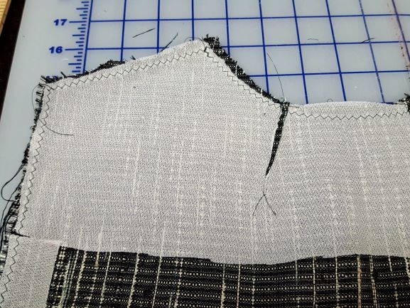 Once I cut the fabrics, I cut 1” strips of soft fusible interfacing to fuse into the seam allowances of the vest. Because the fabric was both white and black, after testing both colors I chose to interface in white so you would be able to see how the interfacing works in the garment. I used Soft Stretch interfacing which is perfect for handwovens; we sell it in interfacing samplers or by the yard.