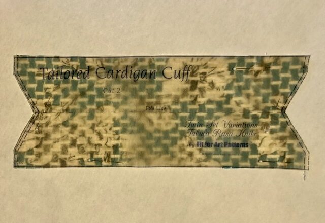 You will also need your Knit Tee side panel and sleeve pattern pieces to complete your cardigan. Follow the directions in the side bar on page 5 of the Twin Set instruction book for adding ease to the cardigan body and sleeves, if desired. Cut out the Tailored Cardigan Cuff and Collar patterns if using and remember to shorten the sleeve pattern as directed to accommodate the cuff.