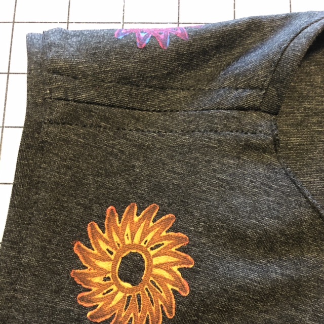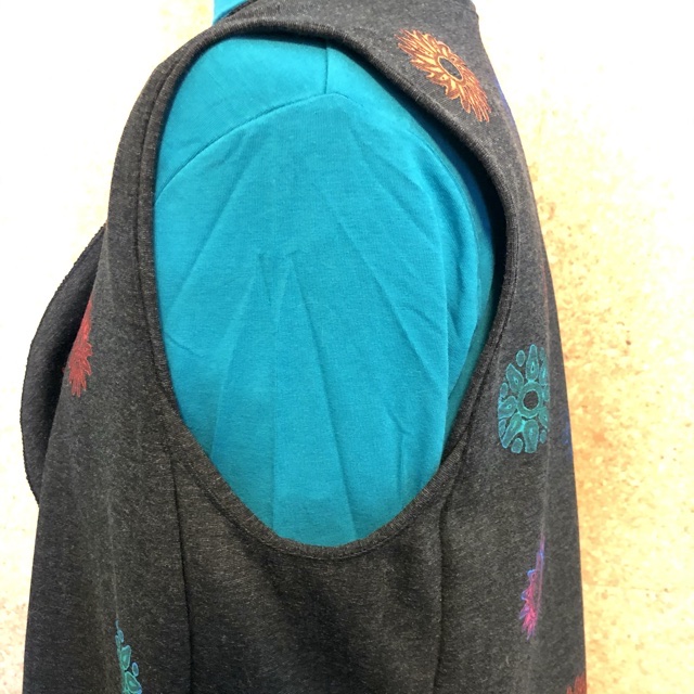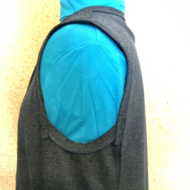 • Applied armhole binding around armscye (as directed for the tank top) making sure to catch the shoulder seam allowances in the binding.