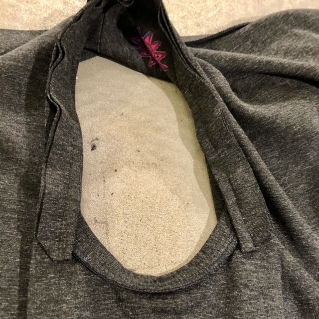 • Clean finished the side seams with the serger, finishing the raw edge of armscye binding at the same time.