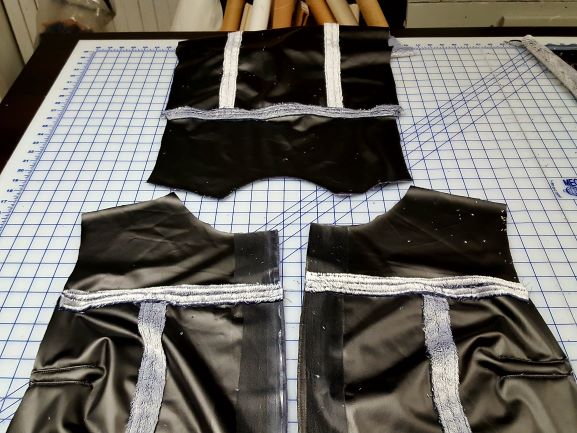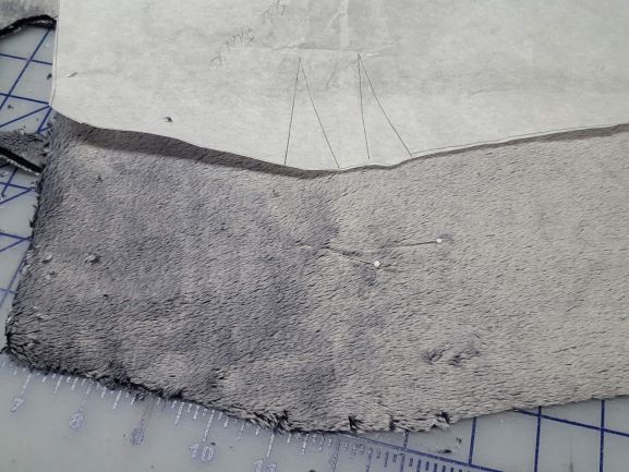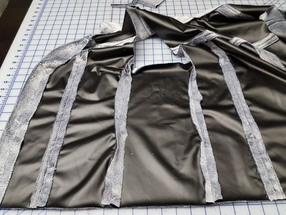 Once the previously prepared pattern pieces were laid out, a sample of my seam technique was made with some unneeded fabric. It confirmed my assumptions that this seaming technique would be visually effective and allow the vest to even be reversible. The only drawback was the fuzzy mess the fabric created in the studio. Since new year’s studio cleaning was already on the schedule, this was not a deal breaker.