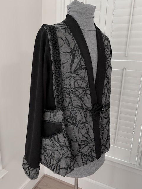 “I have a vest I made years ago that is out of style now but I put a lot of time into using various fabrics & texture techniques. My plan is to convert that garment into the TRJ vest with the swing side variation. I found a fabric in my ‘stash’ that will compliment the pieces in the original vest.” We can’t wait to see Val’s recycled Tabula Rasa vest!