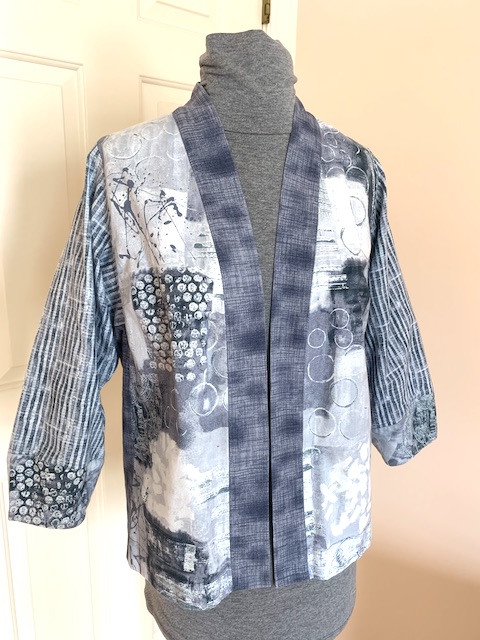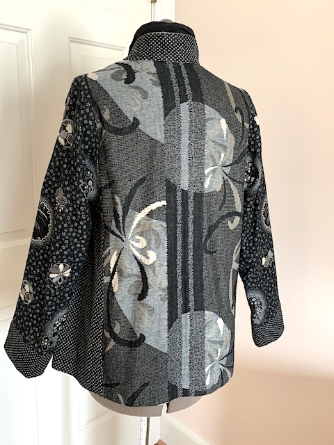 “I am inspired by fabric, especially texture and color combinations. Of course, the end use of the garment is also a consideration. I can embellish or use interesting techniques to enhance various sections of the jacket, try a new technique or use one in a different way. Some fabrics speak for themselves. I refer to those as ‘let the fabric do the work for you.'” Here are a couple examples: