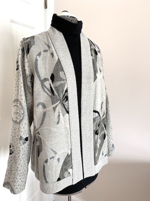 “Other fabrics need to be held in the hand…see how they feel and drape. That helps me determine the best garment design for that fabric.” And so, a drapey rayon crepe became an elegant swing jacket and a double faced japanese cotton became a reversible jacket.