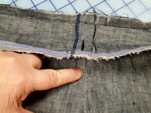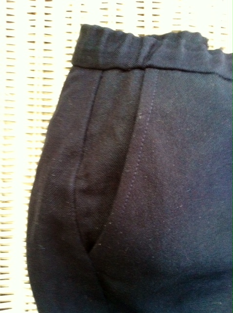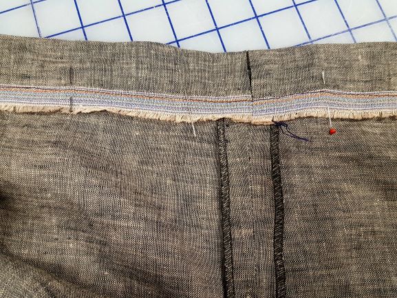 Or for pants finished with a faced waist, read the posts Back to Pant Basics, and Inserting Elastic into Faced Waist Pants.