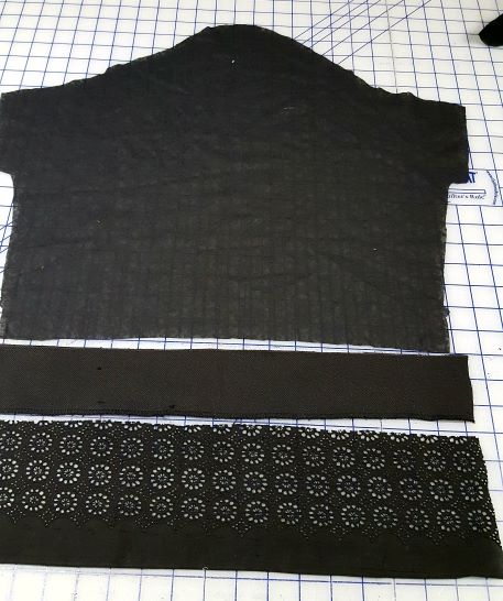 Finally, it was time for construction. I wrote out the steps since the use of remnants and the addition of the placket and other details required a rearrangement of the construction steps. The opaque pique was also used in the shoulder seam to anchor the eyelet and hide the seam allowances.