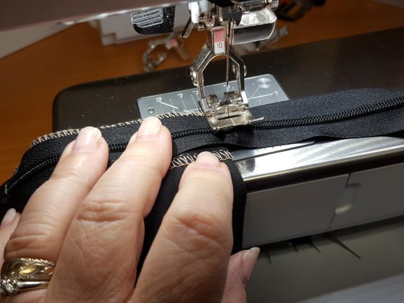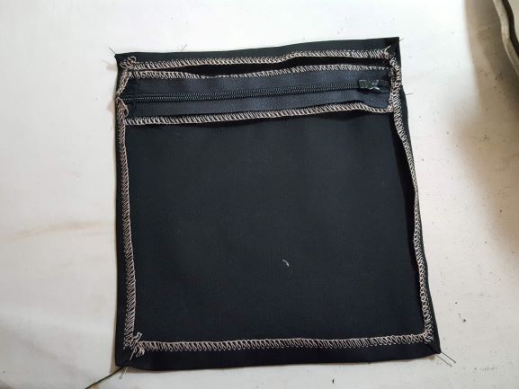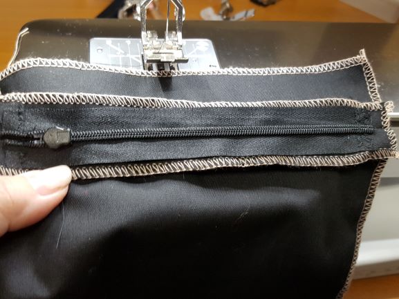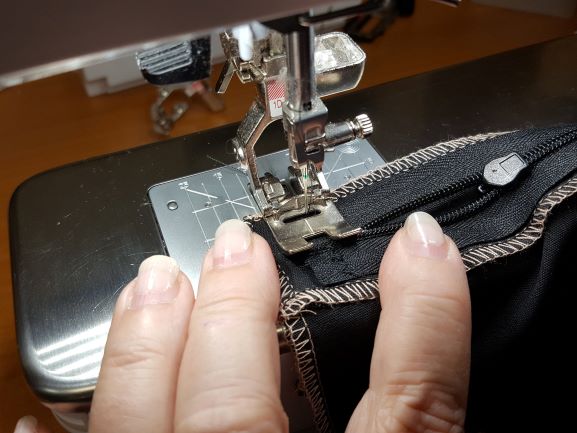 Press the zipper so the pocket is smooth. Stitch each end of the pocket opening closed carefully using the zipper foot of the sewing machine.