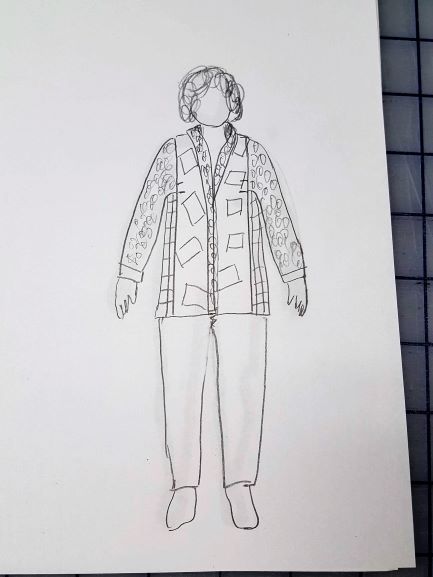 With the print penciled in The garment on me! - Color in your sketch if you want an accurate visualization.