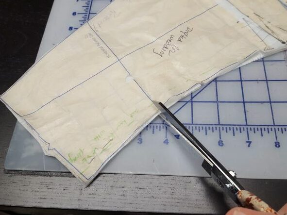 Alligned back pattern with round back adjustment. - Pin the patterns in place so no shifting happens during cutting or marking.