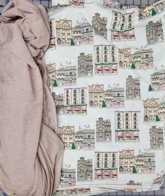 Then enjoy a festive holiday. In the Cumbie house, we will be wearing adorable holiday print jersey tops on Christmas Eve. Did I mention that the largest buildings on the fabric say Neiman Marcus over the door? What do you think they did with this fun fabric?