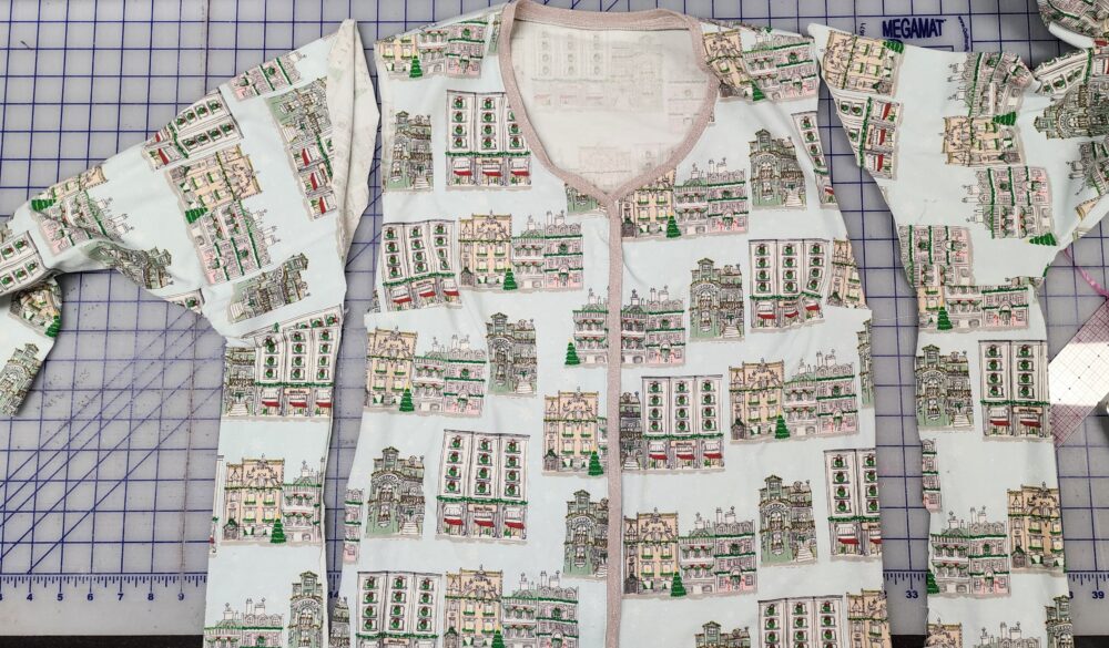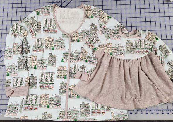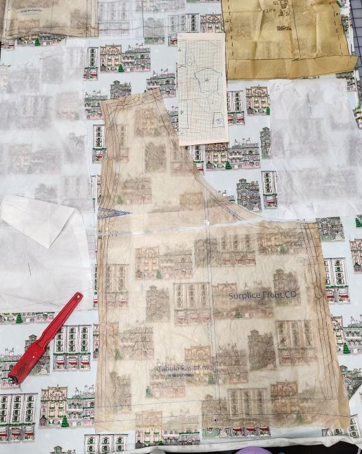 Using my layout diagram, it was easy to set the patterns in place, pin and then cut. First, of course, I sewed up the little dress, then my daughters’ tops, which are waiting for fittings so I can alter and make their desired finishes. The tops will certainly be ready for Christmas Eve.