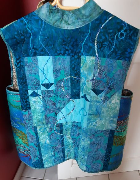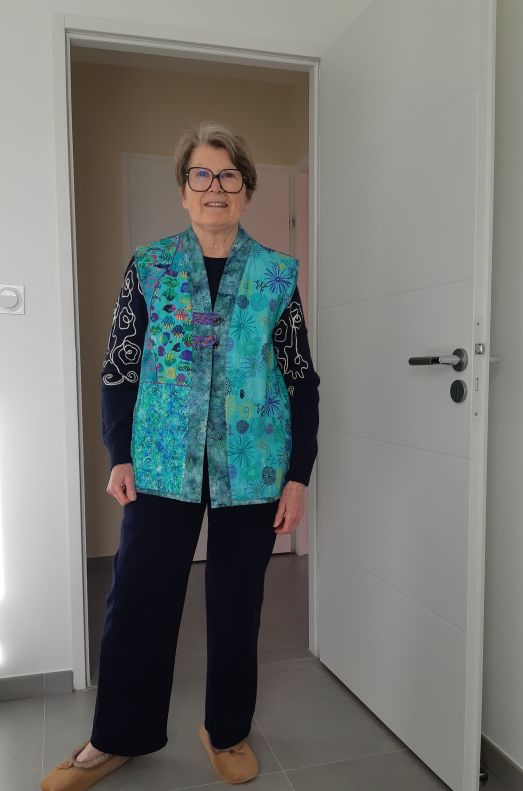 In 2018 in THREADS I found THE solution with an article by Rae Cumbie. I bought the TABULA RASA JACKET pattern and easily made my first quilted jacket and vest, a breeze! It’s versatile and allows us to be creative, even with stash fabrics.