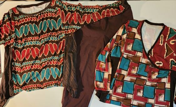 The knit fabric group became two Tabula Rasa Knit tops. One is a swing side tunic with ballet neck from Wide Neckline Variations. It’s a very reliable style in my wardrobe that works well on a print with strong horizontal lines. The second top became a surplice front Clever Crossing Variation, reminiscent of an old favorite in my wardrobe. It is a lot of print, but I hope to enjoy it along with these other new wardrobe additions as winter becomes spring.