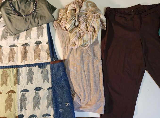 The boots and the fabrics had been ordered online and upon arrival they were decidedly brown. Sometimes fabric prints and accessories will coordinate with a variety of colors, but I could not find much in my wardrobe that felt like a good match. You can read about another time this happened in the summer of ‘24 in the post Add New Color to a Core Wardrobe.