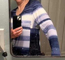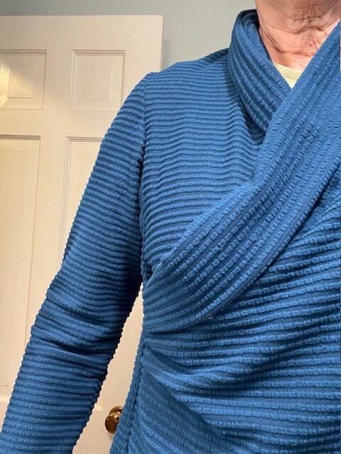 It is hard to get things done in a one-day class, but on that rainy September day, Andi stitched a mock-up following Rae’s sizing suggestions. While Andi was pleased, Rae suggested she use the CD front the next time she stitched a top because the mock-up looked pretty snug across the bustline. In January 2026, Andi tried a top with the CD front and reported back.