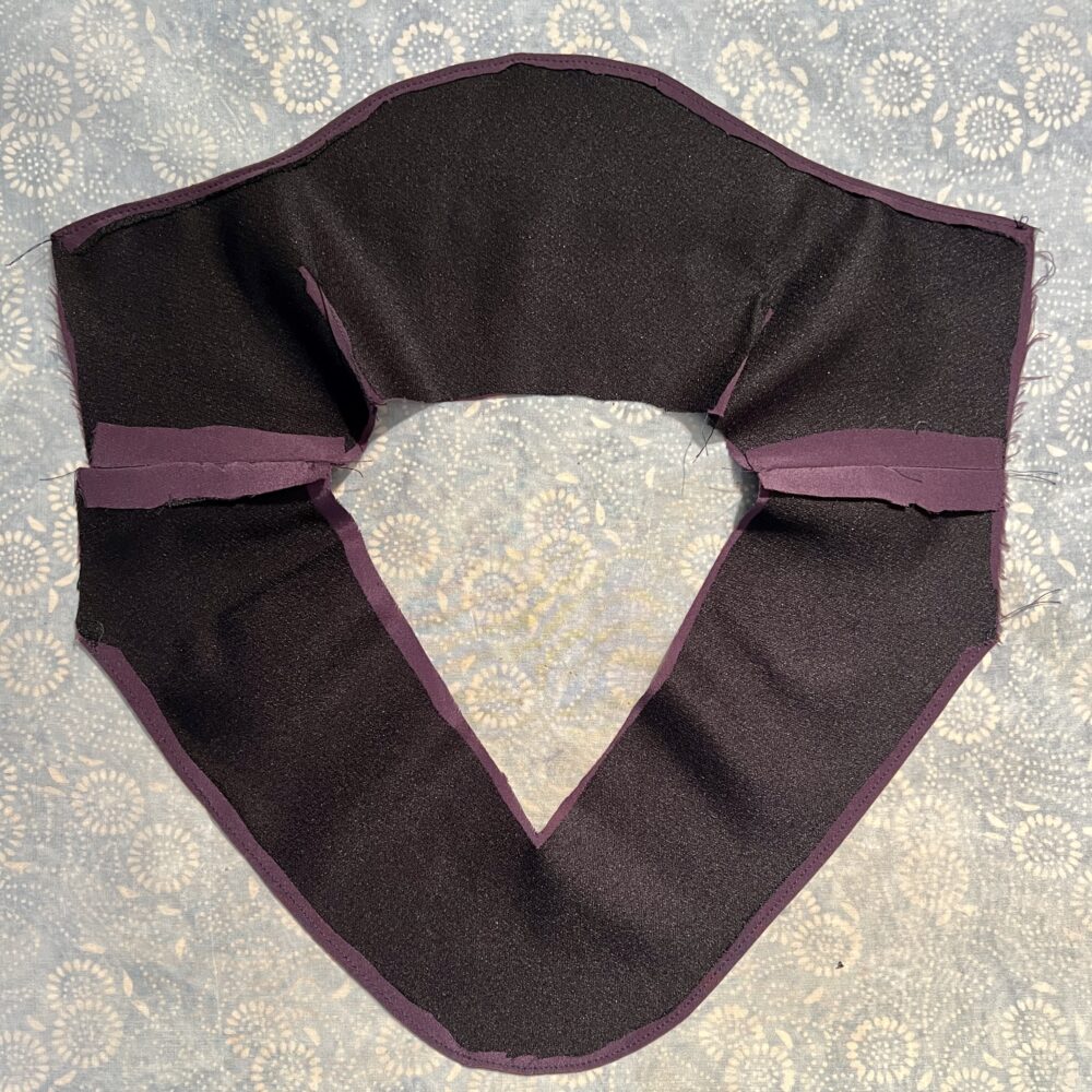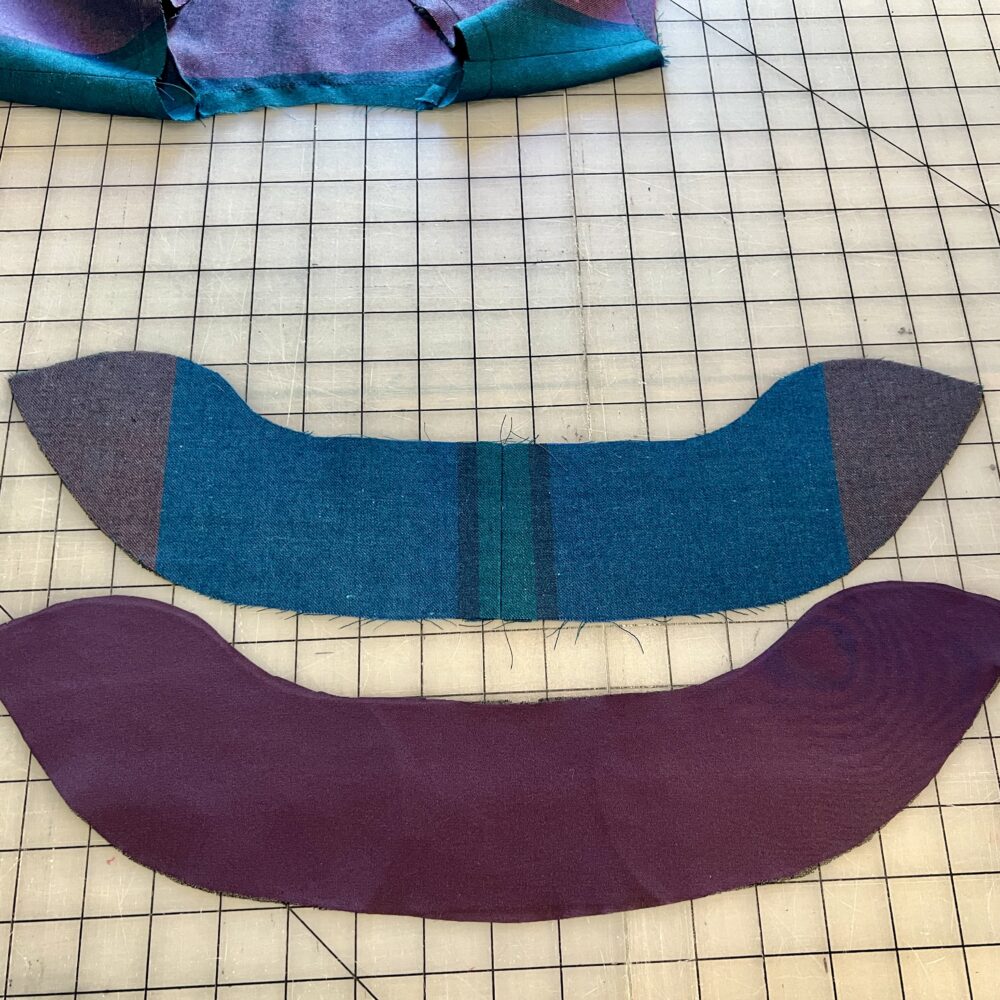 All four collar pieces must also be supported with light to medium weight fusible interfacing before assembly. Follow the directions on page 15 of the V-Neckline Instructions to prepare and assemble the single or two collars.