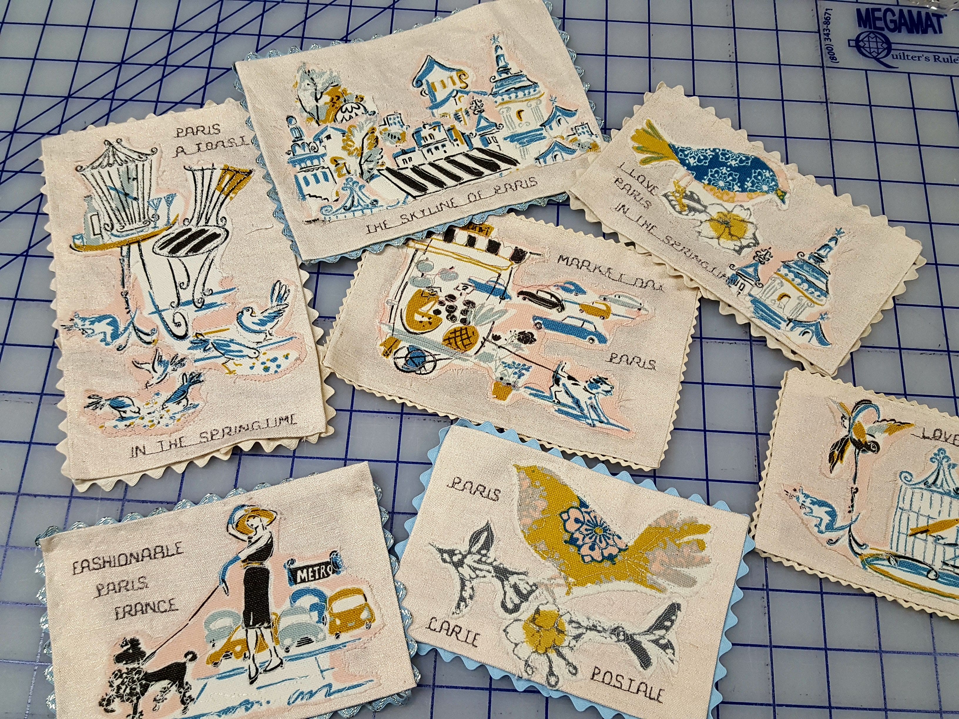 Fabric collage made as a gift for the wonderful La Cascade chef. Memories of La Cascade Tote Bag Fabric Postcards