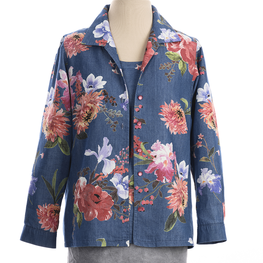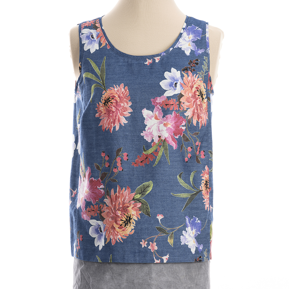 The Carpe Diem sleeveless view can serve as a base for scoop neck tank tops as well as sleeveless dresses. Carrie made this summer tank from floral chambray to match a Tabula Rasa Shirt Variation. This fun fabric is a JoAnn Fabrics staple that can be washed and worn time and again. The neckline and armhole openings were finished with bias binding rather than the facings that come with the Carpe Diem pattern to keep it a light underlayer. The technique used for binding the tank top in Twin Set Variations for Tabula Rasa Knits is easily adaptable to woven tops.