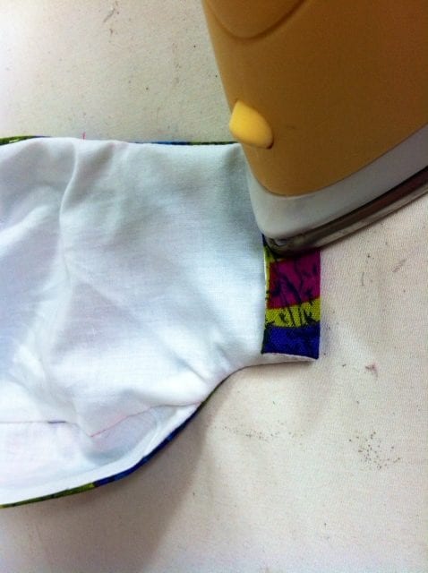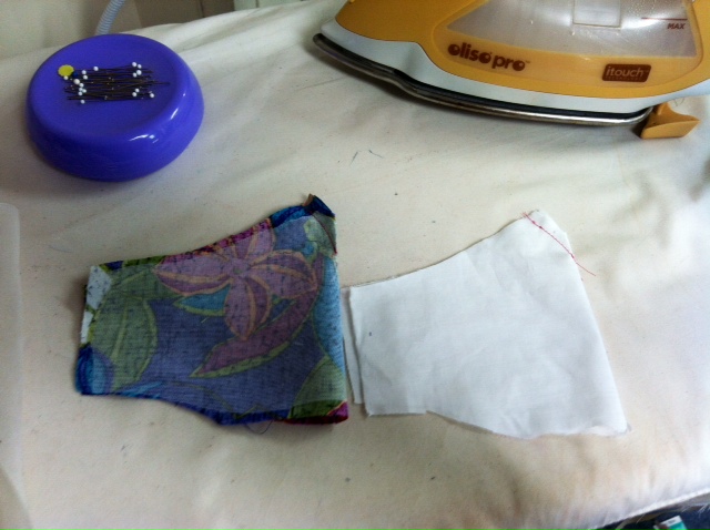 Fuse the interfacing to the wrong side of the mask fabric, use a press cloth to keep your iron clean.