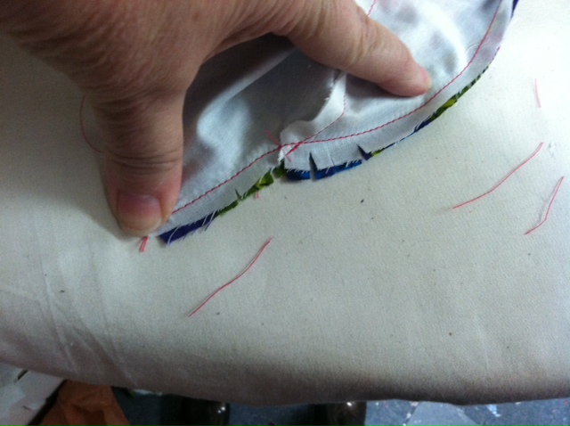 Turn the fabric and stitch across the seam allowance, paralleling the seam line approximately ¼” away.