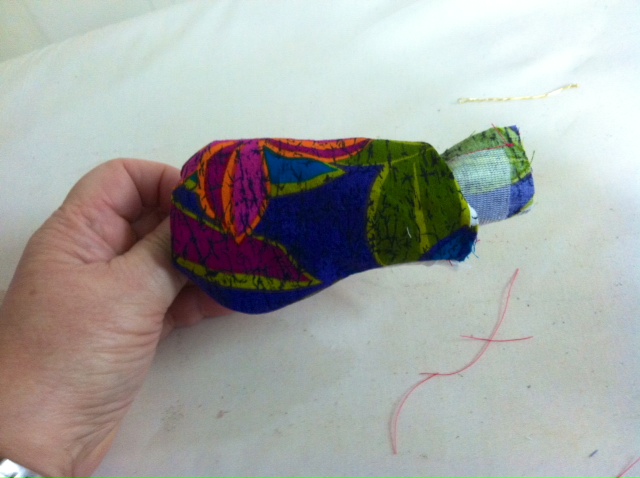 Slide the prepared wire between the 2 layers of fabric and into the casing.
