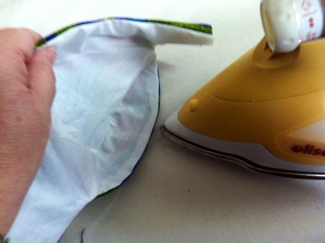 Press the edges carefully for a neat appearance.  Straighten out the wire and position it close to the seam for easier topstitching.
