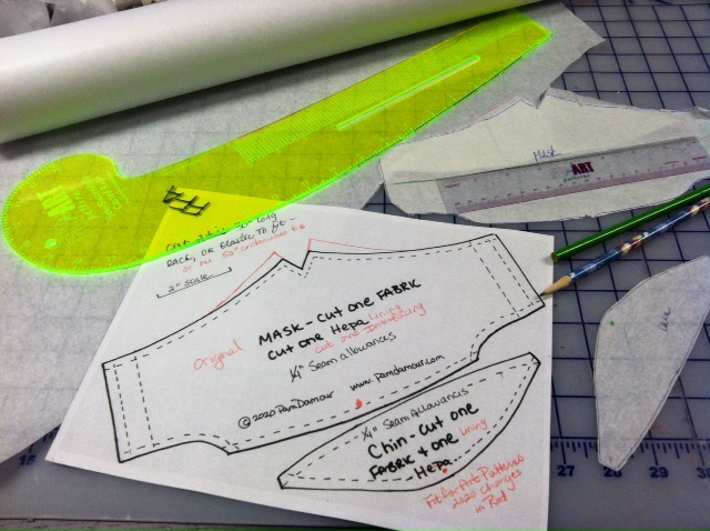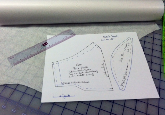 Fit for Art Pattern’s has teamed up with Pam Damour to bring you what we think is the best personal use mask pattern available. We have also created extended sizing by adding a large man’s mask pattern and a child size mask pattern to Pam’s original work based on a Japanese design owned by her husband, a nurse.  Watch her video if you have not done so already.