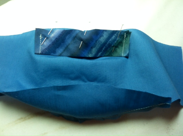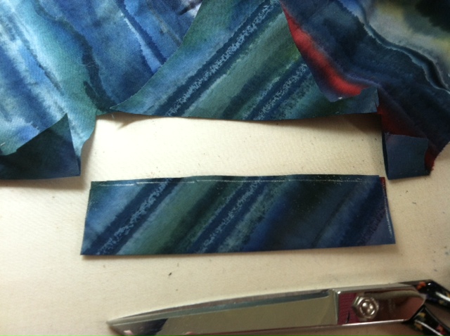 Prepare the casing  by cutting out a 5” by 2” bias strip of either your fabric or your lining.