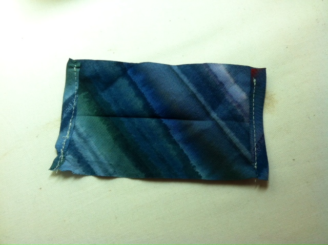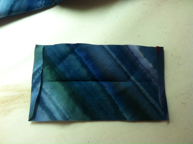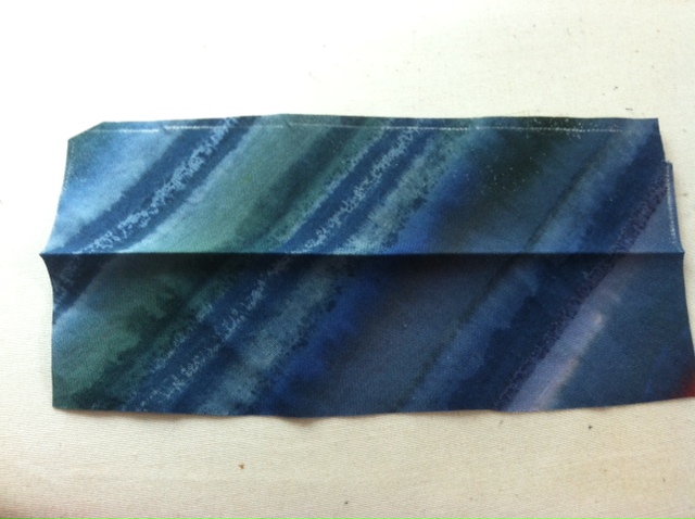 Press the casing in half along the 5” side.  Then open the casing up and press each 2” edge under ¼” to the wrong side.  Stitch down these ¼” finishes using the machine.