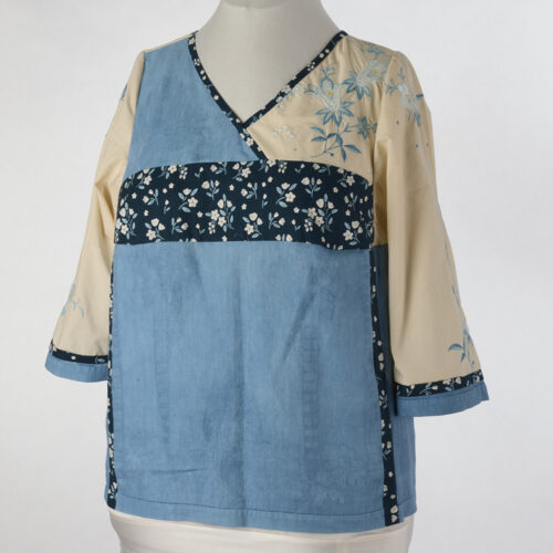 This straightforward Carpe Diem top was made from two old cotton damask napkins that were dyed pastel bleu during one…